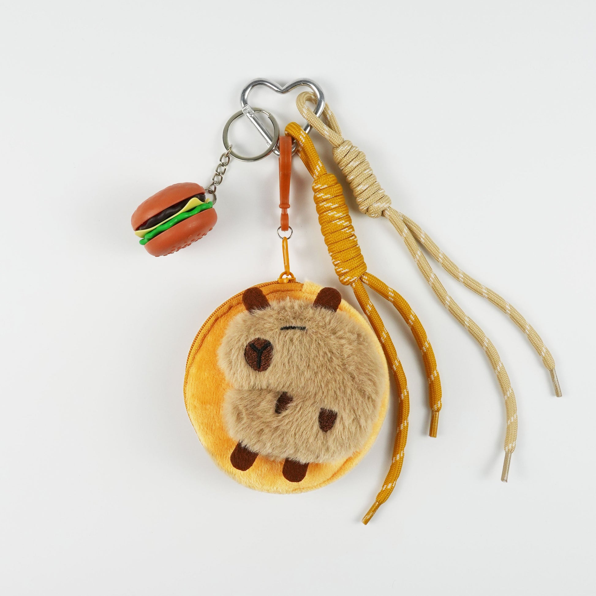 Carry your coins or keys in style with this charming Capybara Burger Bag Charm. The plush Capybara adds a cute touch to this versatile accessory, making it perfect for girls. Whether you use it as a key pouch or coin purse, this lovely bag charm is sure to be a must-have!