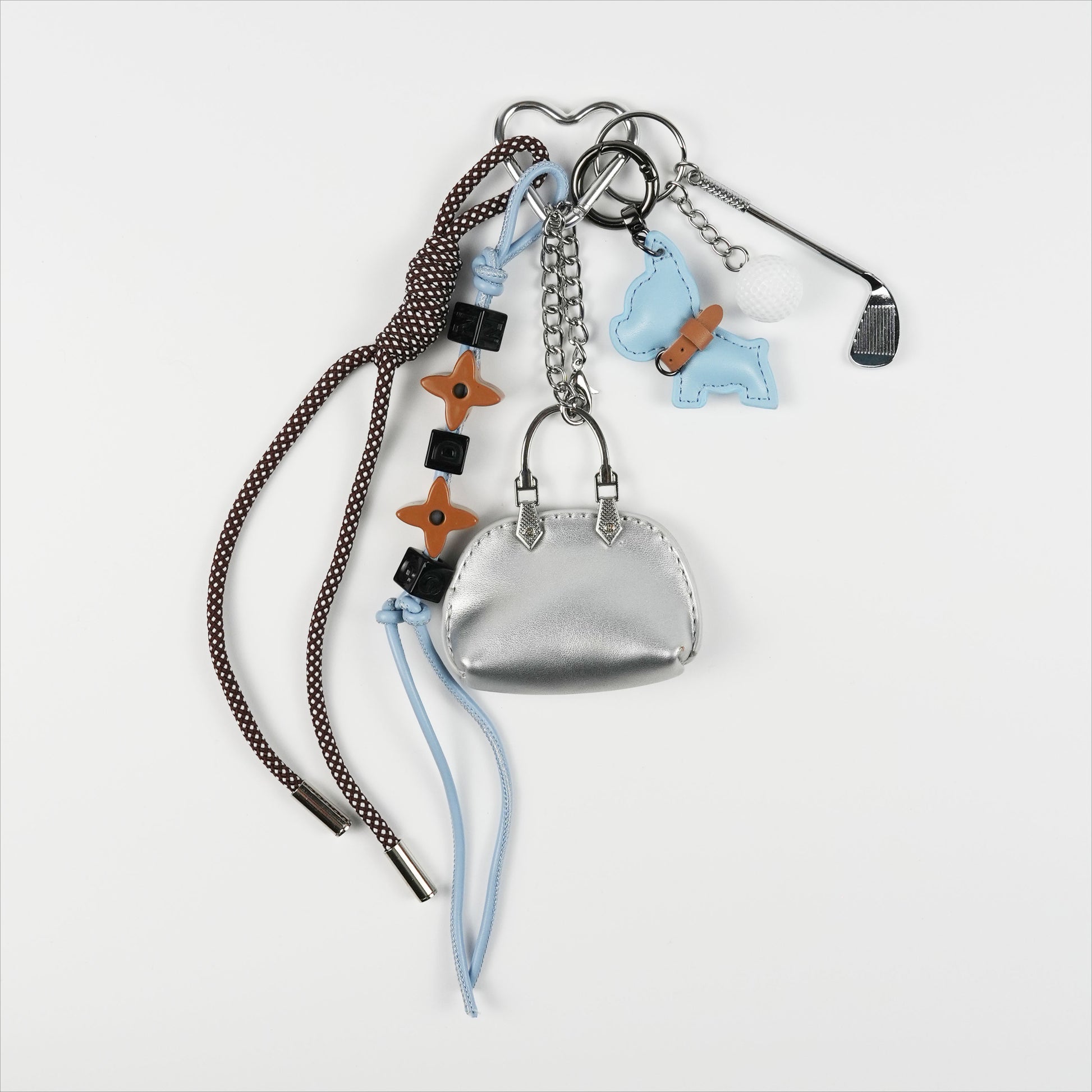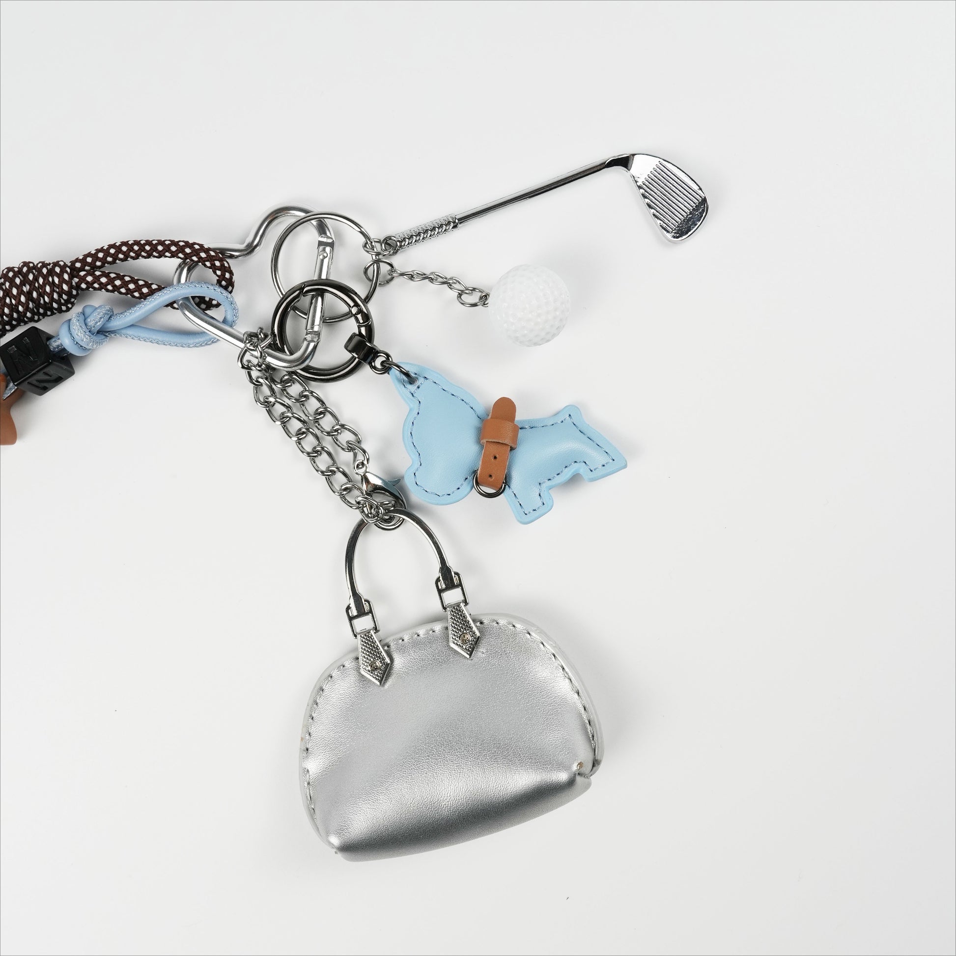 French Bulldog & Golf Bag Charm With Mini Silver Hand Bag Pendant