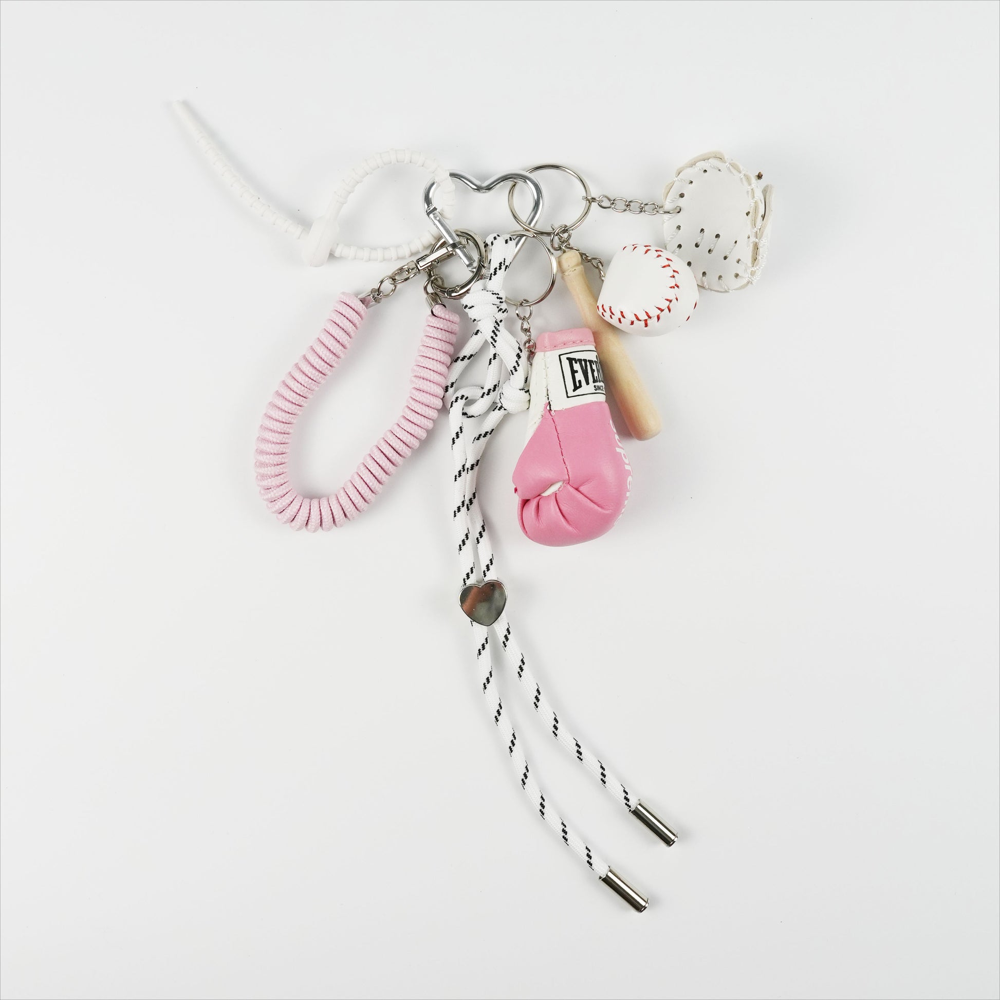 This pink bag charm pendant is a must-have for sporty girls! With a pink boxing glove and baseball design, it adds an energetic touch to any bag. The attached spring lanyard makes your bag unique. Grab it now and make you the coolest girl around!
